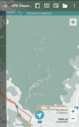 Below is screenshot showing map screen of GPX Viewer: