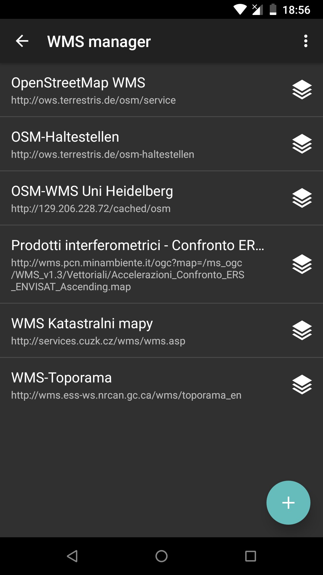 However, GPX Viewer does support only WMS maps which have compatible map projections. Compatible map projections are: epsg:3857, epsg:3785, epsg:3587, epsg:102113, epsg:102100, epsg:900913, openlayers:900913, esri:102113, esri:102100, osgeo:41001 and 54004. Here you can find the tutorial how to add WMS map. The screenshot below is showing WMS maps manager in GPX Viewer with a couple of WMS maps added.