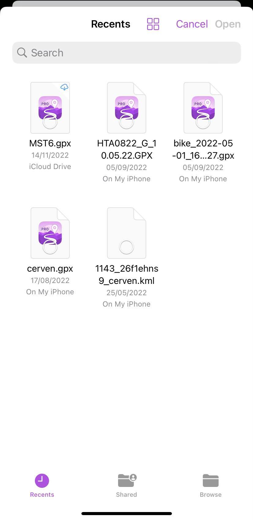 GPX Viewer PRO allows importing gpx, gpz, kml, and kmz files from your device's internal storage or from iCloud. In this section we will describe how to import track or waypoint step by step: